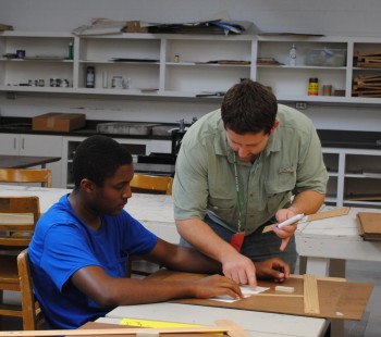 Drawing instructor and Delta State art professor Michael Stanley assists a Core Arts camper on the first day of class.The arts are alive and well this summer at Delta State University. On June 7, 50 enthusiastic students from across the southeastern region joined eight professional artists for the annual Janice Wyatt Mississippi Summer Arts Institute Core Arts program at the Bologna Performing Arts Center.