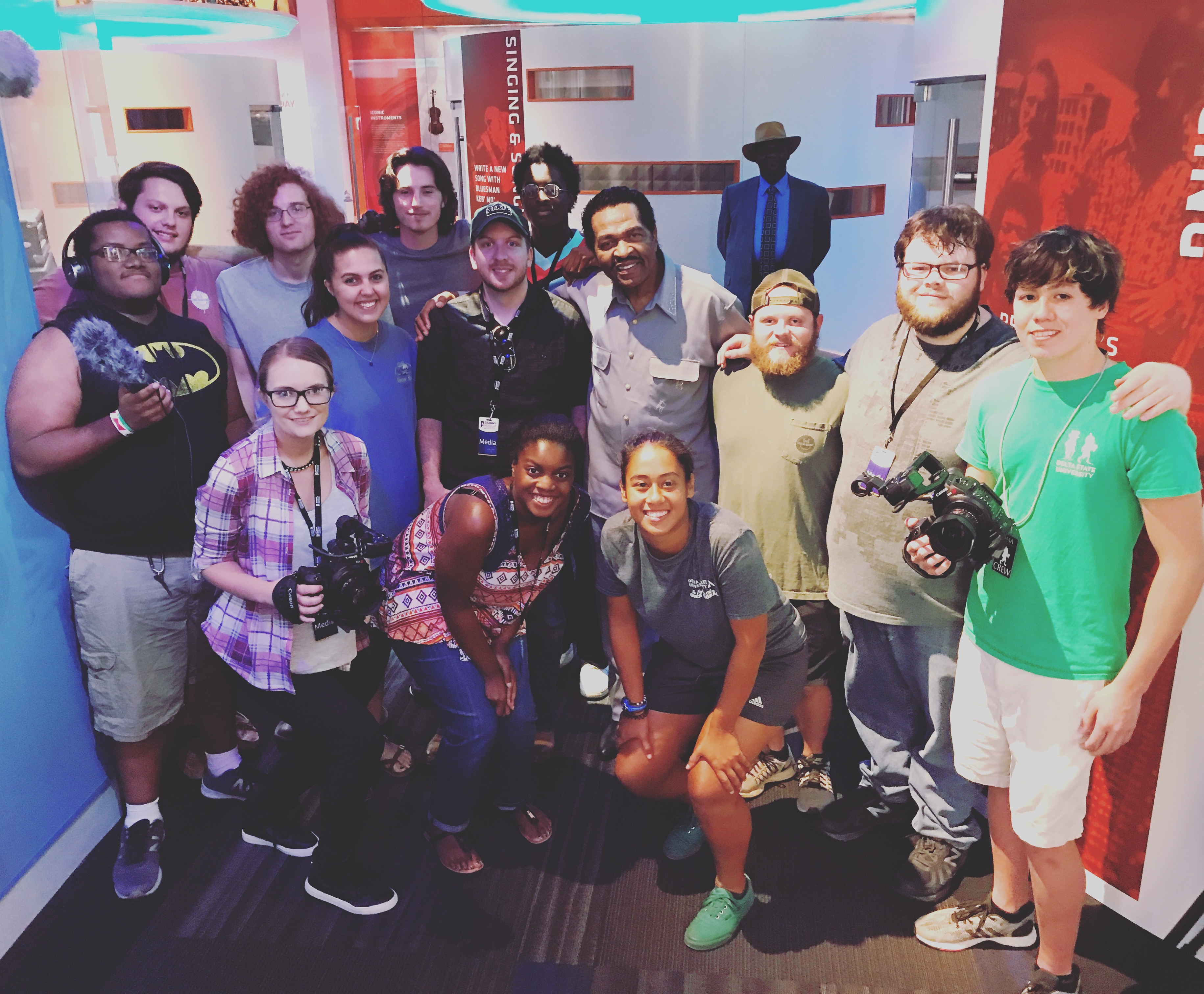 Delta State University media students pose after a conversation with GRAMMY Award winning Blues legend Bobby Rush.