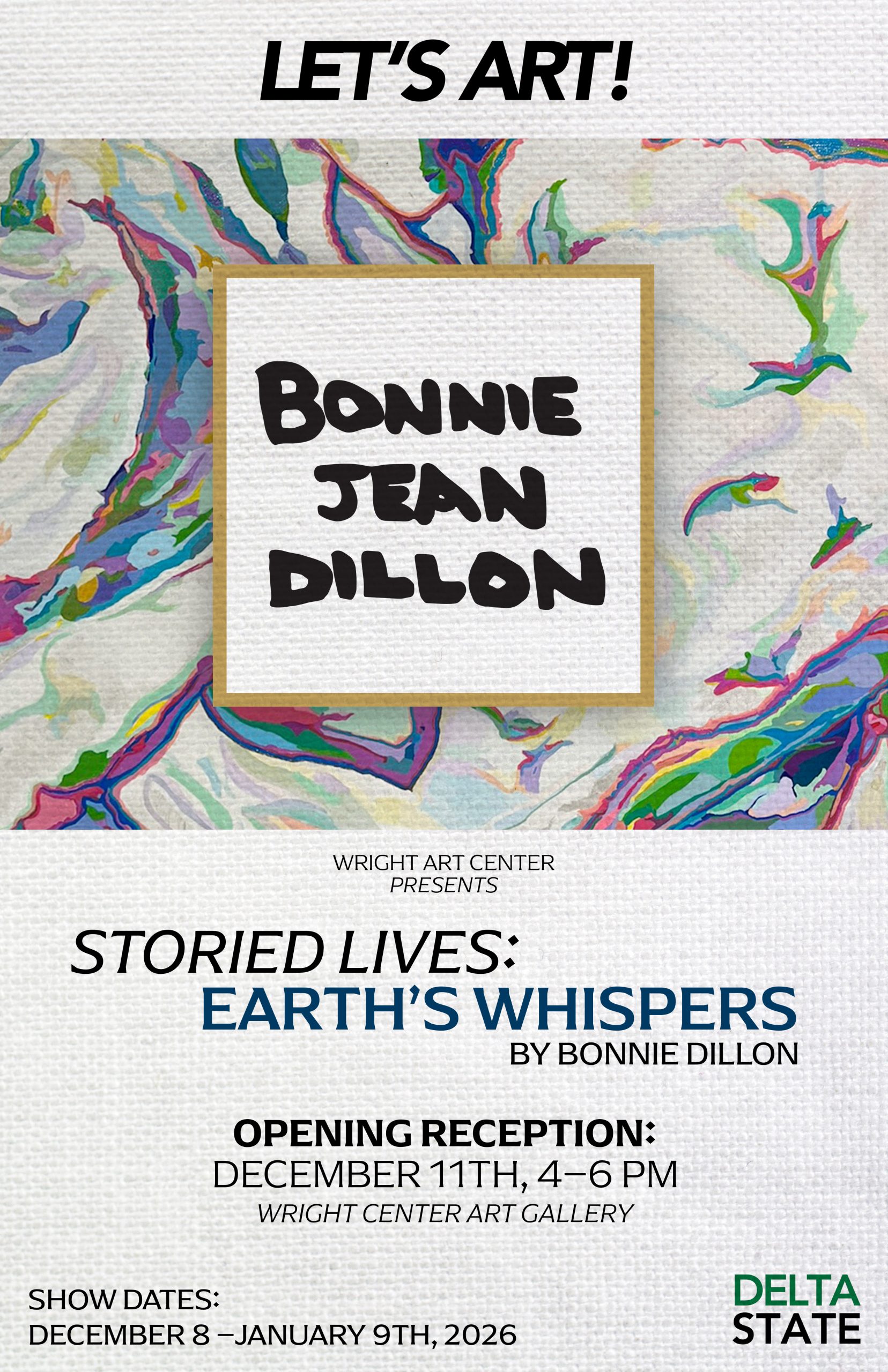 CLEVELAND, Miss. — Delta State University’s Fielding Wright Art Center is proud to present Storied Lives: Earth’s Whispers, the Master of Fine Arts thesis exhibition of artist Bonnie Jean Dillon. The exhibition will be on view from December 8 through January 9, with a public opening reception on December 11 from 4 to 6 p.m.