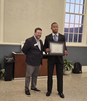 Aidan Hayes (right) receives his award from Dr. Matthew Shaner, Director, Ole Miss BASE.