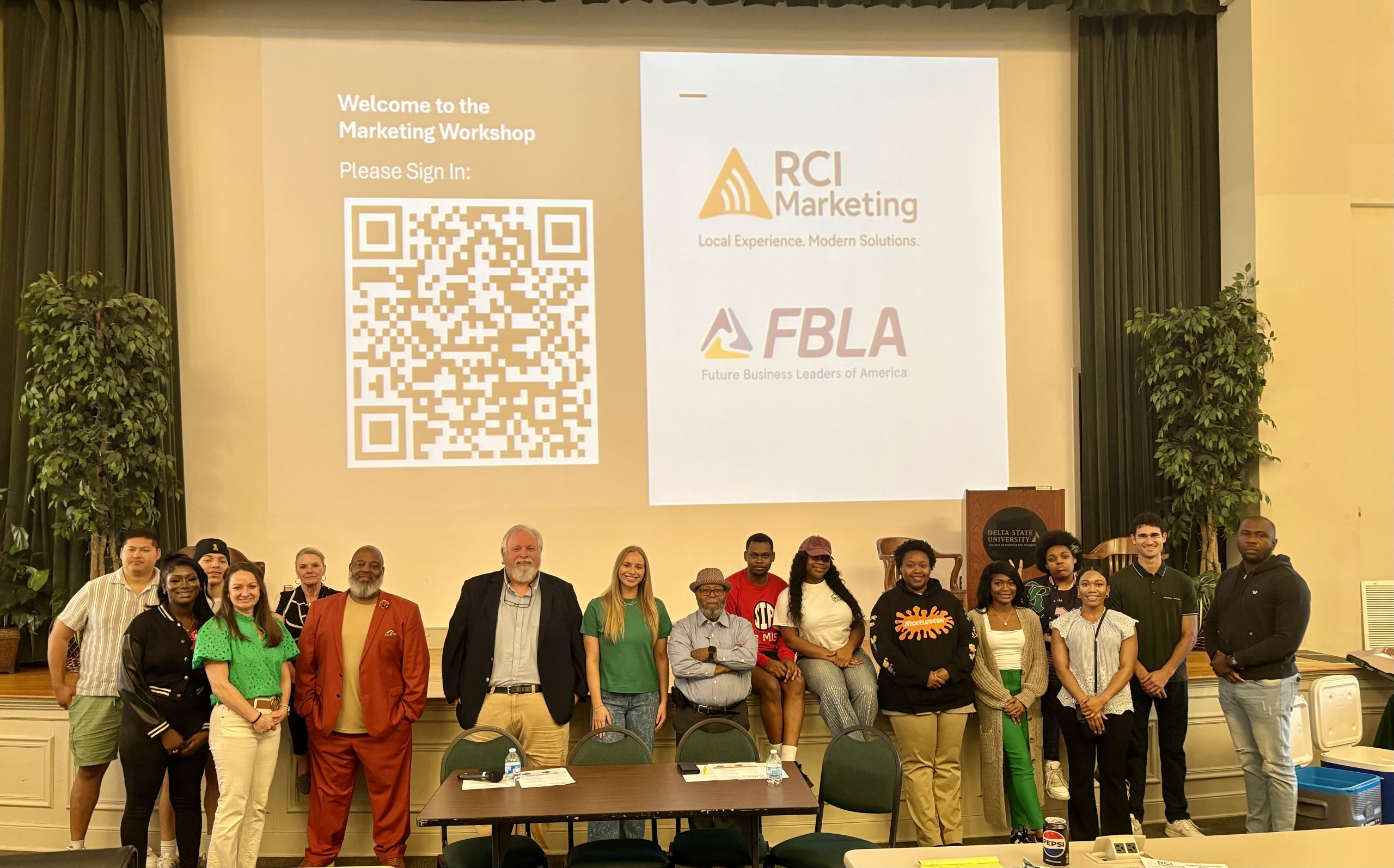 Representatives from RCI Marketing met with students from DSU’s Future Business Leaders of America to explore career opportunities and marketing strategies during a recent workshop held in Bailey Hall.CLEVELAND, Miss. — Delta State University’s chapter of Future Business Leaders of America (FBLA) recently partnered with RCI Marketing to host a hands-on workshop designed to connect students with career opportunities in radio broadcasting and digital marketing.