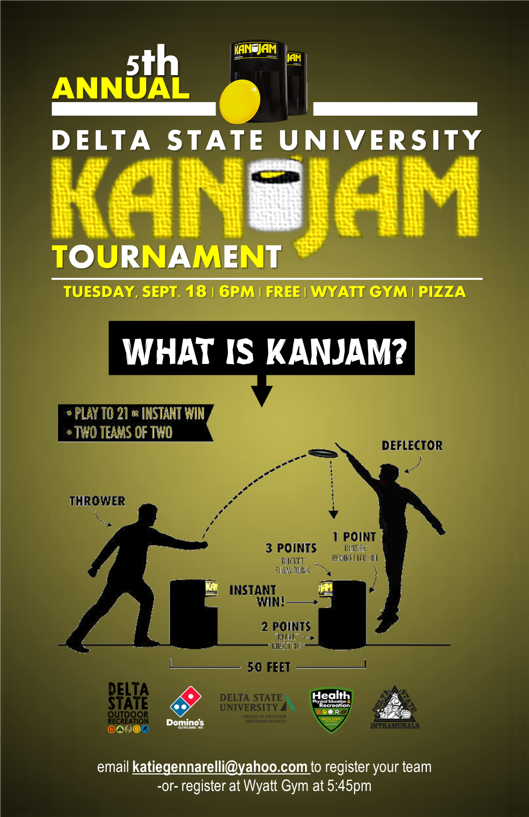 6-9pm | Wyatt Gym | Onsite Registration begins at 5:45pm | Free Pizza for Competitors
